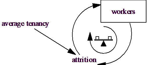Suppose that you have 100 people working for you and you decide never to hire anyone again. Your average worker hangs around for 10 years. What will happen to your workforce? This is an example of a first order negative feedback loop.