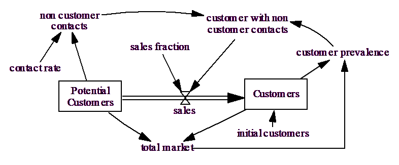 The above model is a very generic core for all diffusion processes. Consider new product sales (sales.mdl):