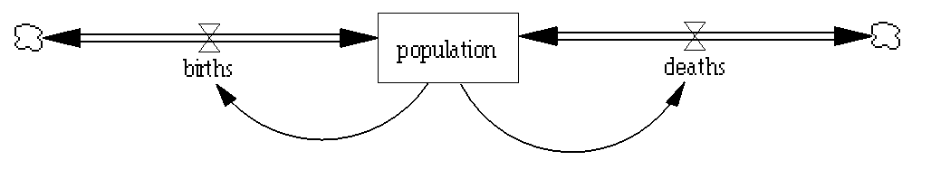 Now we have population and population 0 in the view and we really want to keep population 0, but name it population. Click on the Merge tool, drag population 0 on top of population, answering yes to the prompt. Then reposition population 0 where it was before, then click on a Variable tool and rename population 0 to population. You will have: