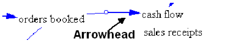 For example to change the connection from orders booked to cash flow into a connection from orders booked to sales receipts you could just drag the arrowhead from cash flow onto sales receipts.