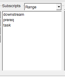 The list shows Subscript Ranges and Subscript Constants in the model. You can use these to replace the default subscripting supplied through the Variable list, specify new Subscripts for variables, or enter stand-alone Subscripts in an equation in the limited number of places they are allowed.