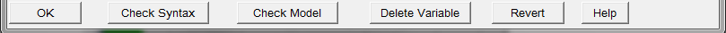 If you have made changes to the equation for a variable and ask to edit the equation for another variable, the Cancel button will be relabeled "Revert." Revert allows you to return an equation you are editing to the state it was in before any changes were made. The Revert button is available while you are making changes but before you use the OK, Check Syntax or Check Model buttons. Once you change the model relative to the equation you are working on, the Revert button is grayed.