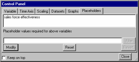 In order to simulate the feedback loop it is necessary to have a value for sales force effectiveness. This dialog works the same way as the dialog used to change model constants. Click on sales force effectiveness then click on Modify, type in 100 and click on Update.
