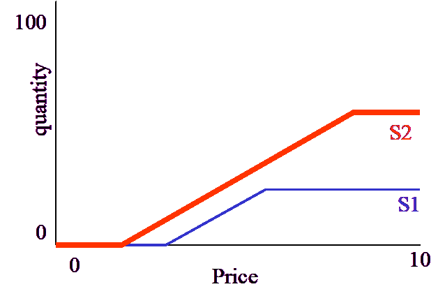 Consider again the original example of car sales. In this case we said that there is some market demand and we want to determine how it is divided between the two suppliers. Thus we treat the market demand as constant, determine the price where it intersects the supply curves.