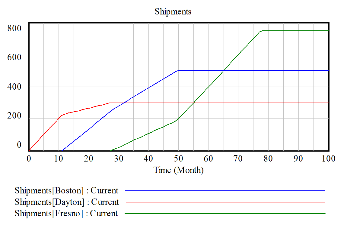 If supply available ramps from 0 to 2000 then the resulting allocations appear as:
