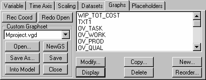 Display activates the highlighted graph. Selecting a graph name and clicking Display shows the named graph. Double-clicking on a graph name has the same effect. If more than one graph in the list is highlighted, all the highlighted graphs will be displayed.