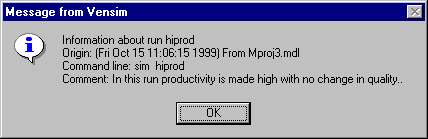 Available - Info...gets information about an available dataset, including the model from which the run was made, the options used for the run, and any comment you might have entered (in the Standard tab of the Simulation Control dialog). Click on a run name then click on the Available - Info button.
