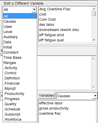 In large models, the list of variables may be quite long. The combobox may be used to modify the list of variables that are displayed.