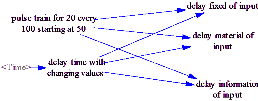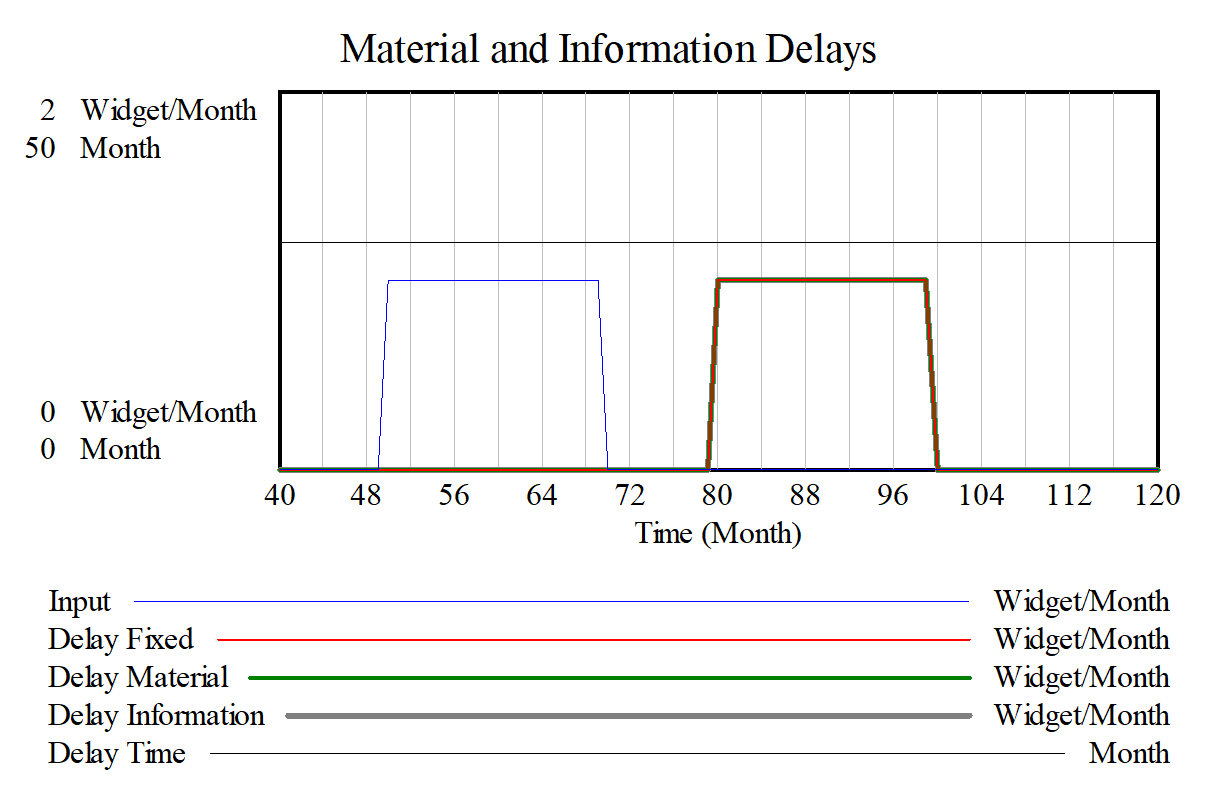 There are three basic discrete delay functions: DELAY FIXED, DELAY MATERIAL and DELAY INFORMATION. The first requires a fixed delay time and, with a fixed delay time all the functions behave the same. It is only when the delay time changes over time that differences emerge.