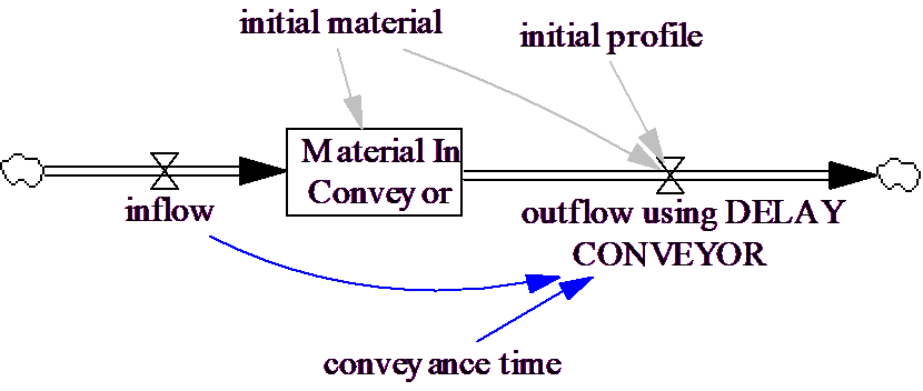 (inflow-outflow using DELAY CONVEYOR)*TIME STEP)*