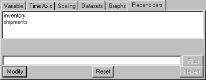 The Placeholders tab of the Control Panel allows you to set placeholder values that can be used in simulating models that are only partially complete. In simulating such models, variables that do not yet have equations, but are used in equations, will need placeholder values.