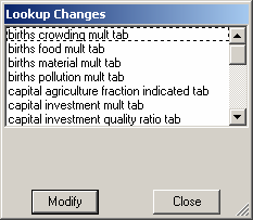 If you click on a subscripted lookup instead of opening the Lookup editor you will bet a list of the lookup elements to choose from. Select one of these and click on Modify to change it. Then click on the Close button when you are finished.
