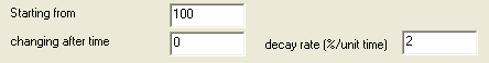sets an exponential decay (decreasing at an ever decreasing rate toward 0). The variable will start at Starting from and remain constant till changing after time then it will decay at decay rate for the rest of the simulation. Note that the decay is in percent per unit time so that if the model is in months 5 means 5%/month (independent of the value of TIME STEP).