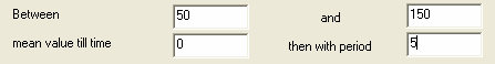 creates a sine wave that goes from the value Between to the value and (note that the second value can be larger or smaller than the first) and has the period specified by with period. The wave will start in the middle of the two values, and maintain that value till mean value till time then go up to the second value, turn and go down to the first and so on.