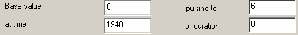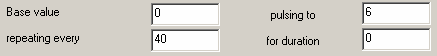 creates a train of pulses starting at Base value and then going up to pulsing to at the time specified in repeating every for the time specified in for duration. The value then returns to Base value till time is twice repeating every then the pulse repeats.
