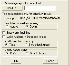 Export to determines what file the data will be written to. You can only export sensitivity results to tab delimited files.