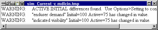 Another type of simulation warning message is the reporting of differences between initial values and the first active value computed. These difference occur only when you use the ACTIVE INITIAL function. Suppose, for example, that you have the following equations: