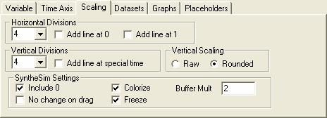 Graphs in Vensim are, in general, automatically scaled and those scales are then divided up into a number of divisions. The Scaling tab of the Control Panel gives you some control over how that happens. You can also use this to control the appearance of the thumbnail graphs in SyntheSim mode.