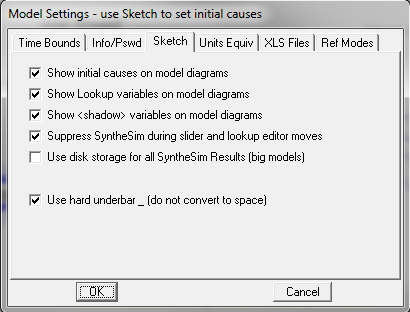 •An option has been added to the Lookup Editor during SyntheSim mode that suspends simulations while a point is being moved. Simulation takes place when the button is released. This option is tied to the choice for Suspending SyntheSim during slider movement and is appropriate for mid-sized models where continuous simulation may impair responsiveness.