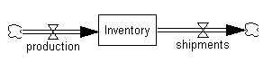 - Click once on the variable Level. An editing box opens. Delete the word Level, type in Inventory and press Enter. Click once on the variable Increasing Quantity. Delete it, type in production and press Enter. Click once on the variable Decreasing Quantity. Delete it, type in shipments and press Enter.
